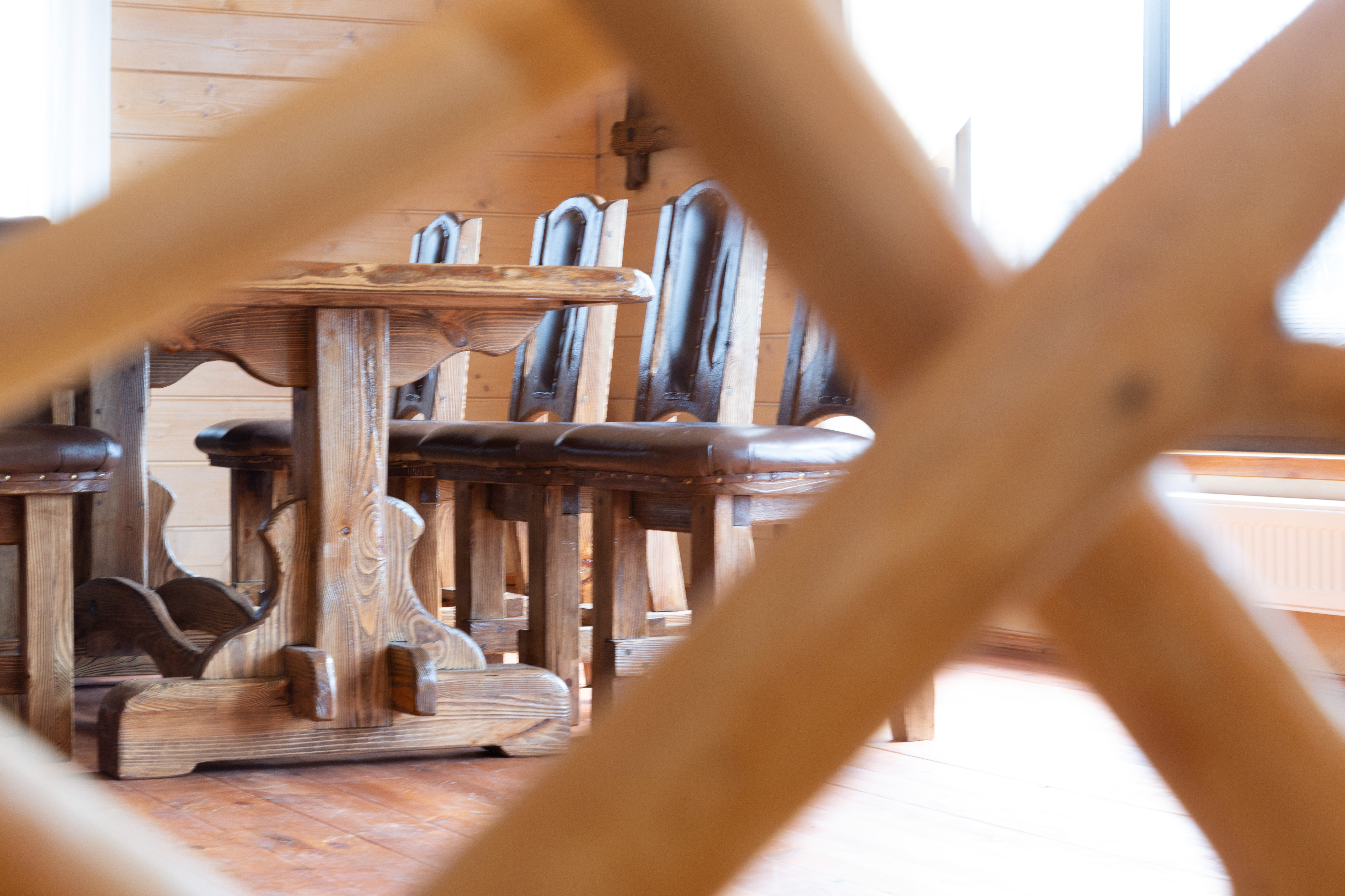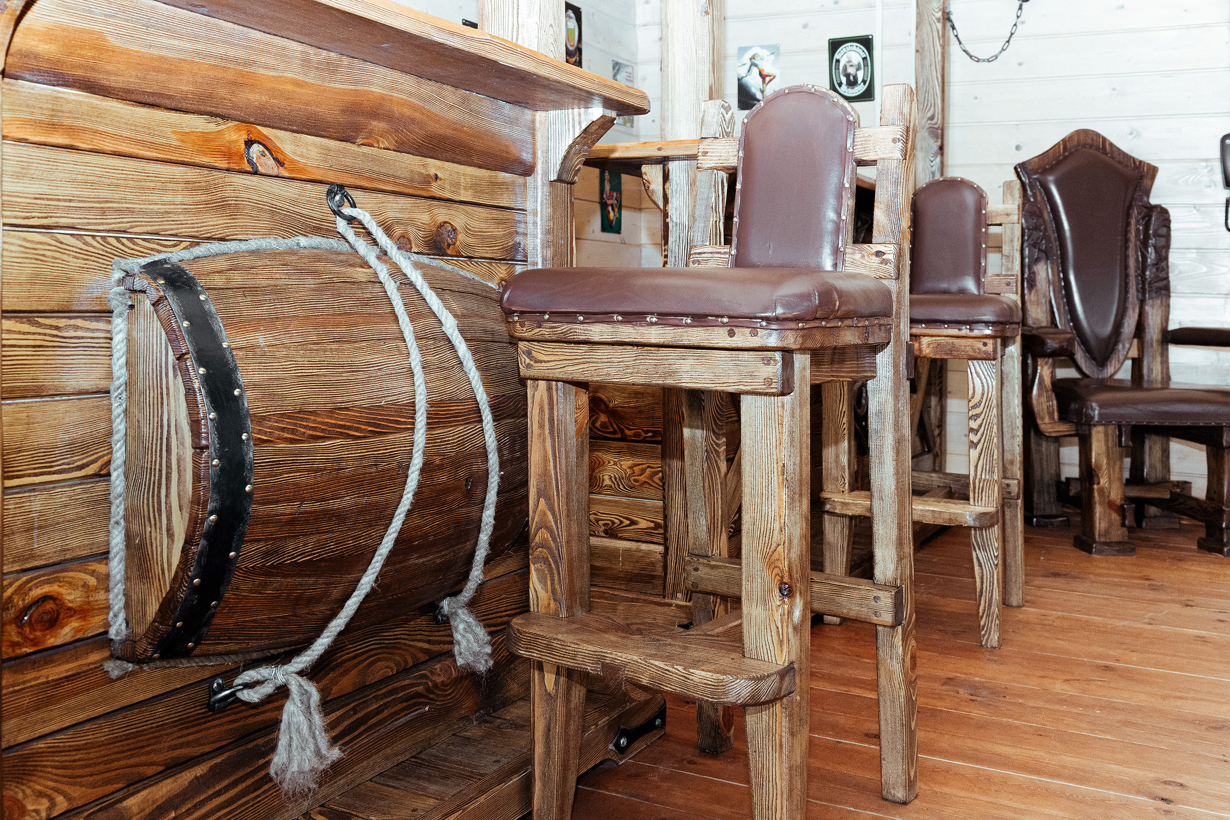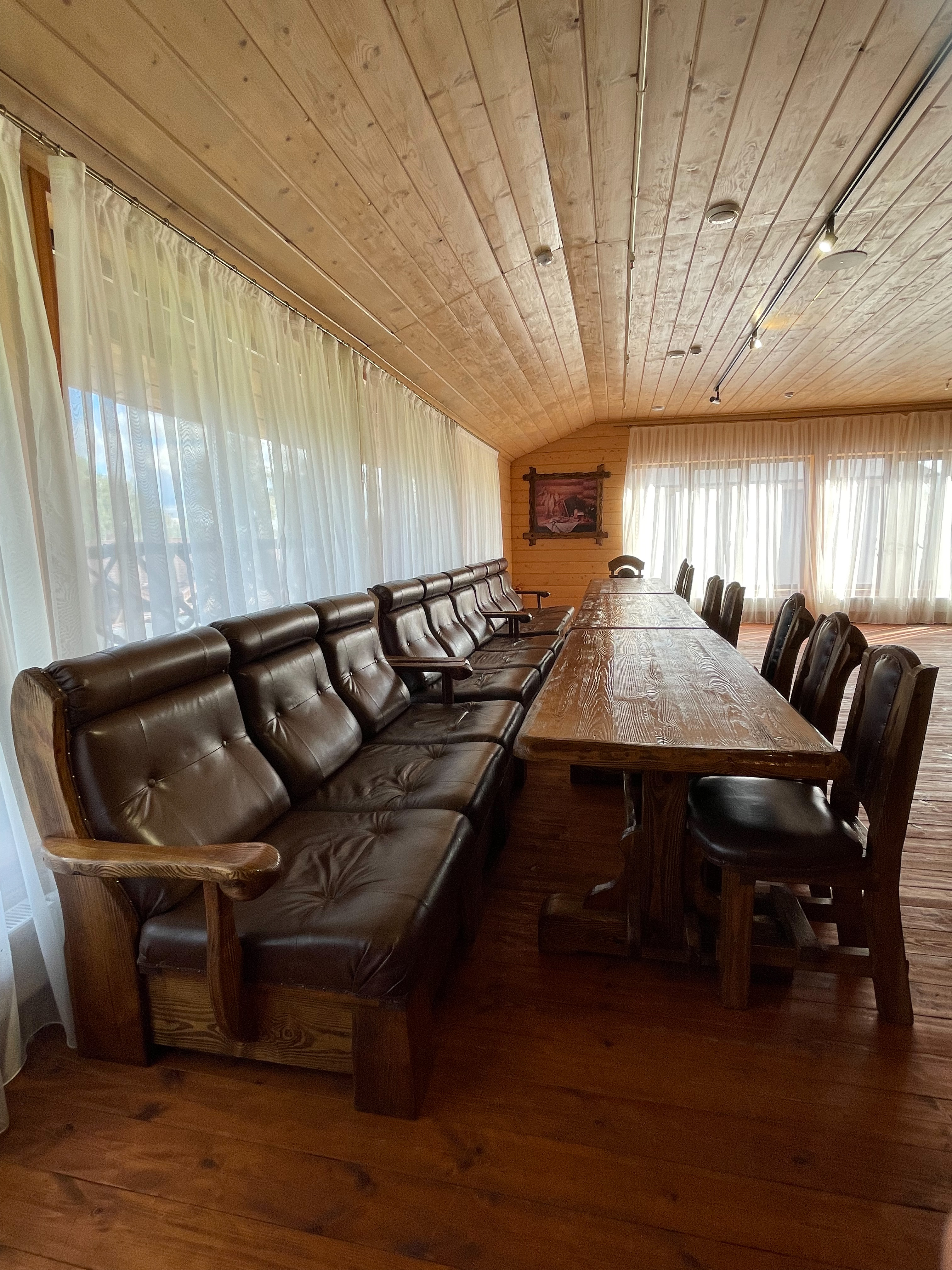 — 3 этаж: впечатляющий деревянный банкетный зал с резной барной стойкой, первоклассным звуком и колонками. Пространство идеально подходит для любых мероприятий — от дня рождения до корпоратива.