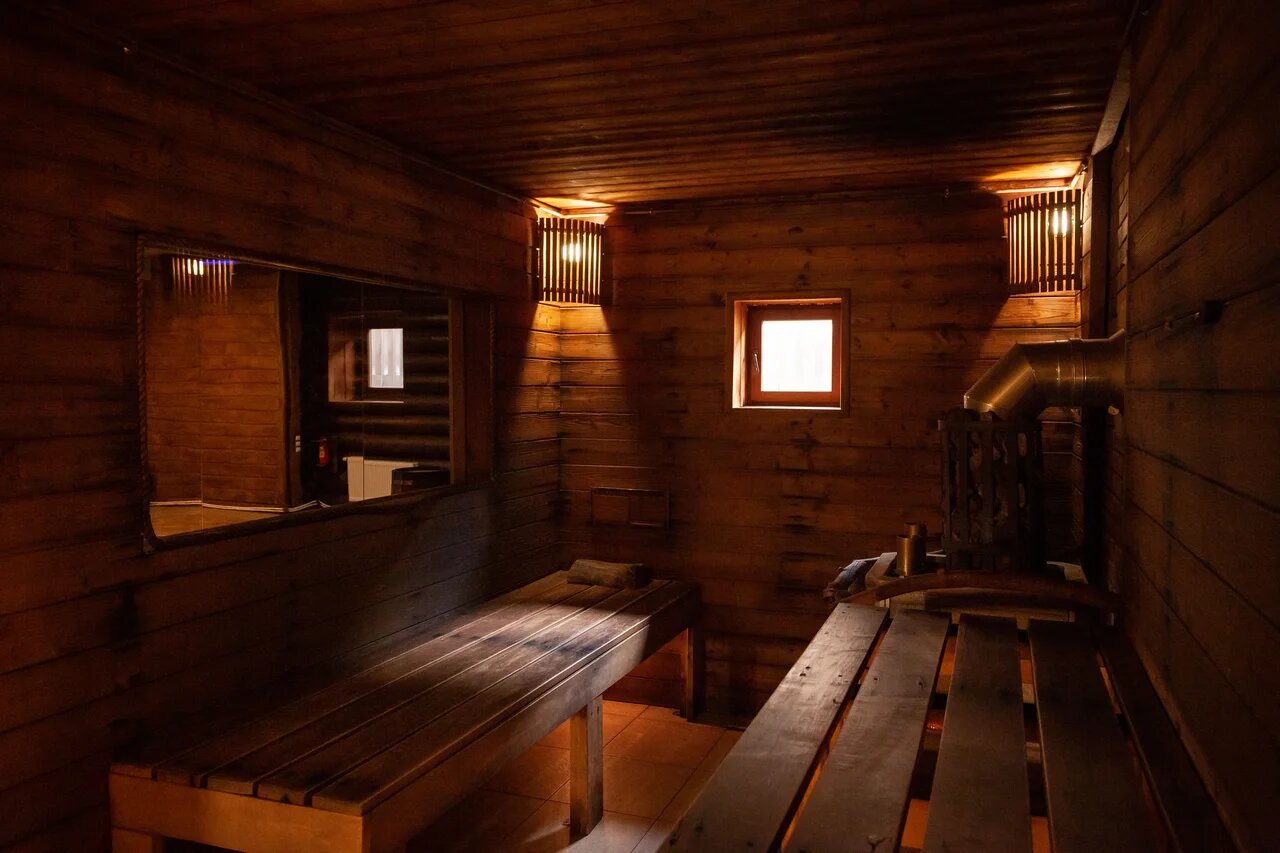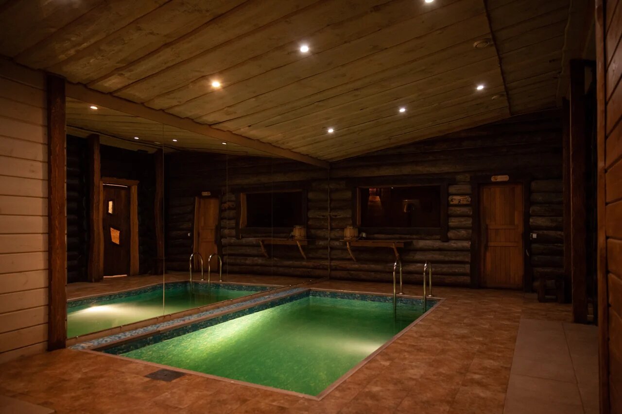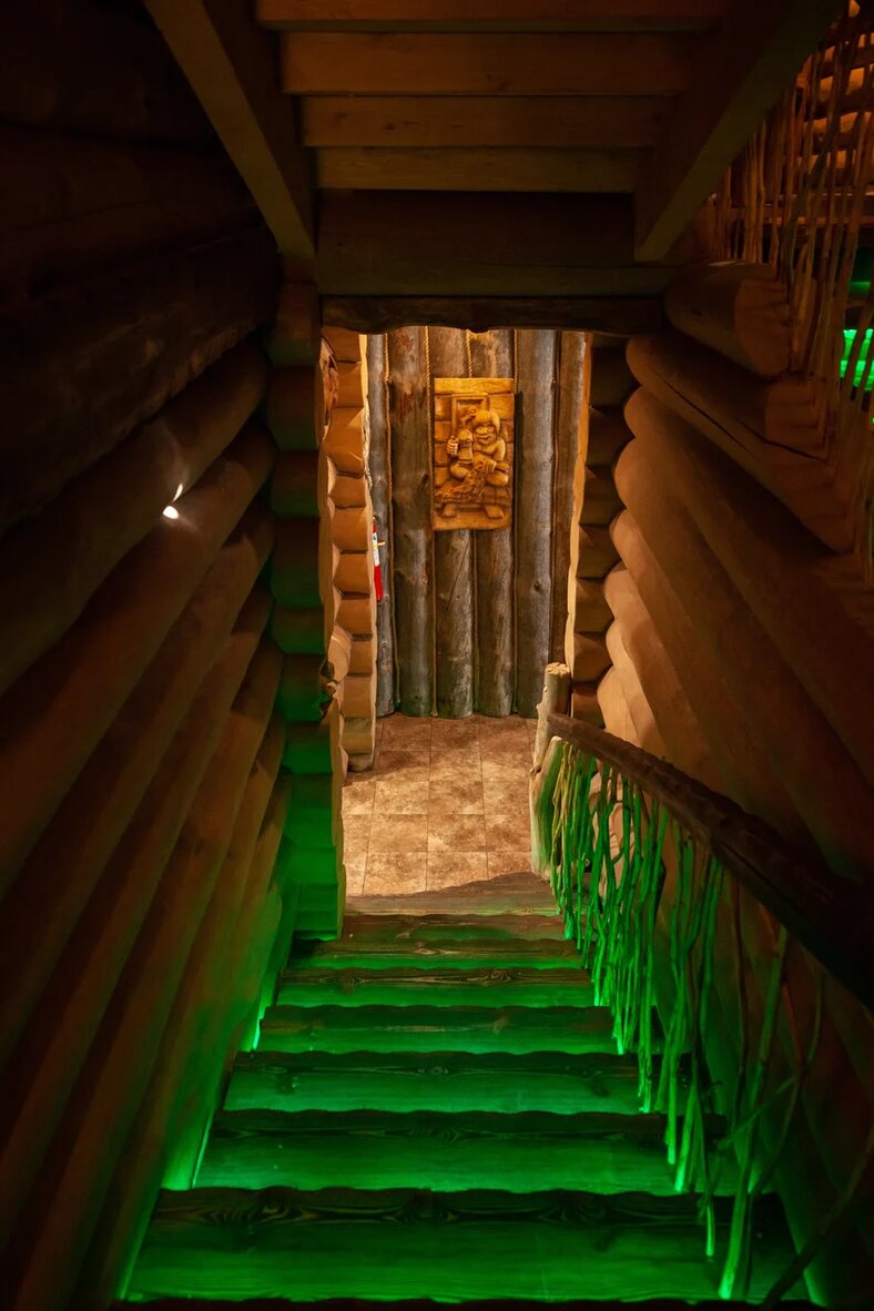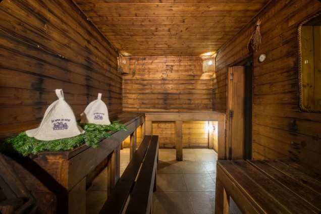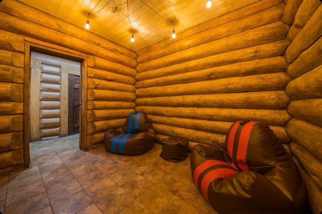 На втором этаже комплекса распологается большой двухместный гамак, профессиональный русский бильярд и покерная комната с вырезанным прямо в стене джокером... 2 уютные комнаты отдыха с уже застеленным чистым постельным бельем для отдыха после банных процедур.