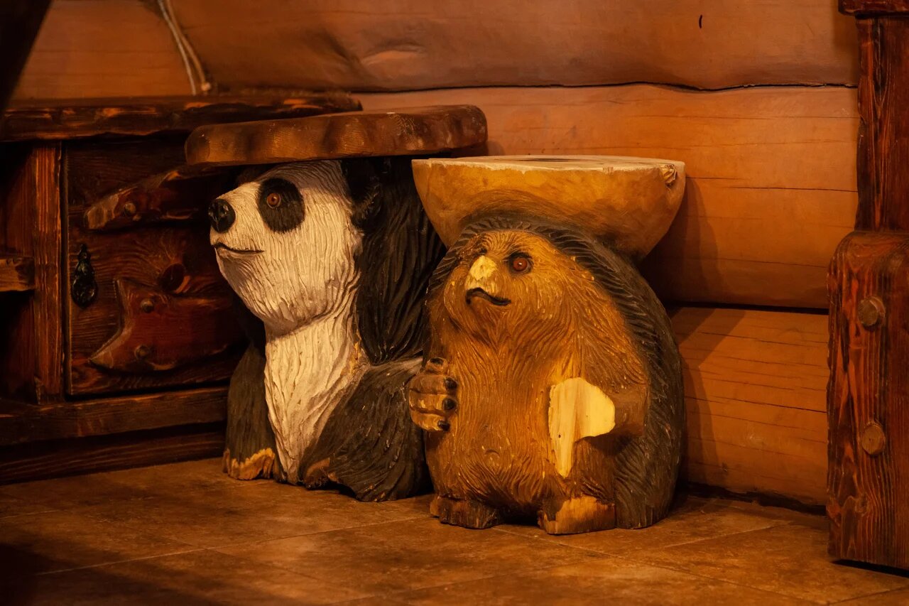 Банный комплекс "Уютный" - это первое творение двух друзей. Изначально комплекс строился для себя и не планировался для сдачи в аренду. В нем реализованы все фантазии и тайные желания. Дети просто в восторге от множества сказочных зверюшек: двухметровый медведь, лиса, енот, белки и собачки.
